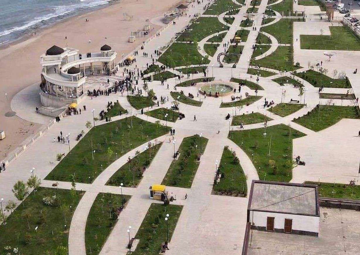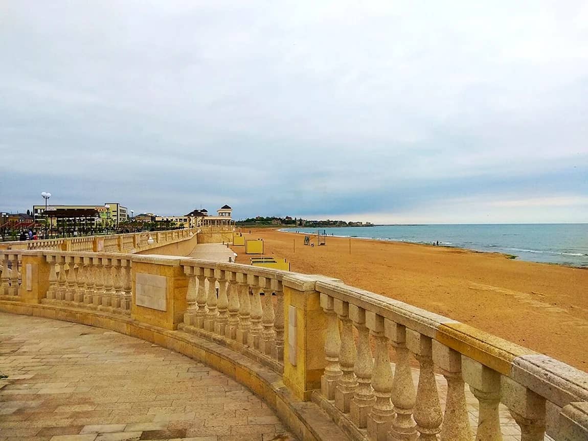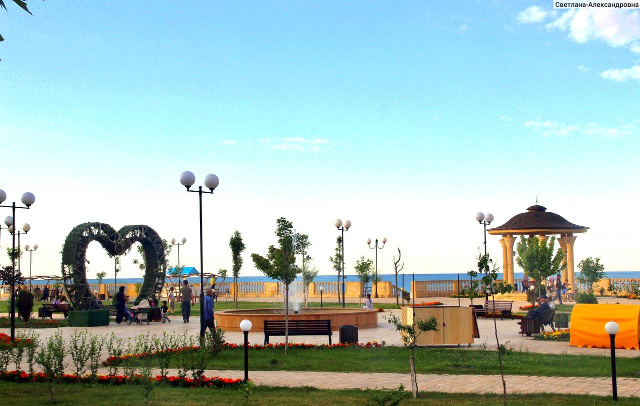 • Ночная набережная на берегах Каспийского моря